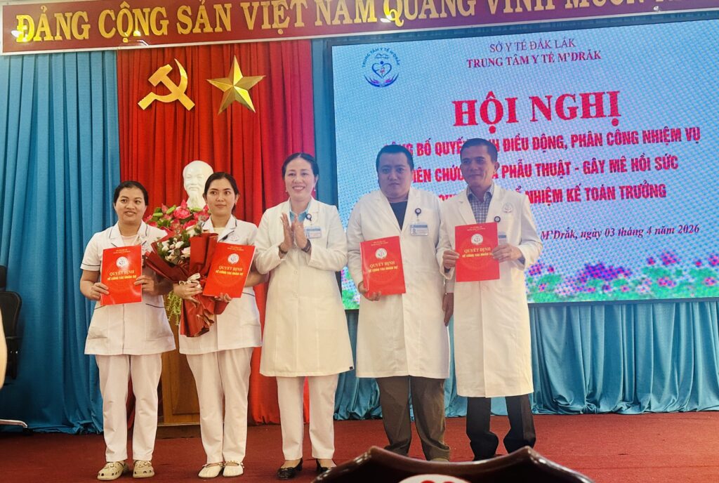 TRUNG TÂM Y TẾ M’DRẮK TỔ CHỨC HỘI NGHỊ CÔNG BỐ QUYẾT ĐỊNH NHÂN SỰ Tháng 4 3, 2026 Chiều ngày 03/4/2026, Trung tâm Y tế (TTYT) huyện M’Drắk long trọng tổ chức Hội nghị công bố các Quyết