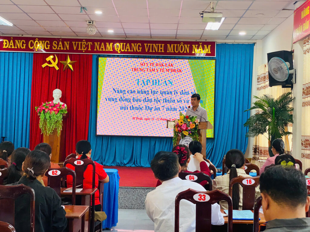 Từ ngày 11 – 12/11/2025, Trung tâm Y tế M’Drắk đã tổ chức tập huấn, bồi dưỡng nâng cao năng lực quản lý, cung cấp kiến thức, kỹ năng chuyên môn; kỹ năng truyền thông tư vấn về khám sức khỏe tiền hôn nhân, tầm soát, chẩn đoán một số bệnh tật trước sinh và sơ sinh tại vùng đồng bào dân tộc thiểu số và miền núi thuộc Dự án 7 trên địa bàn quản lý năm 2025 cho 67/77 học viên là cộng tác viên dân số tại 6 xã.