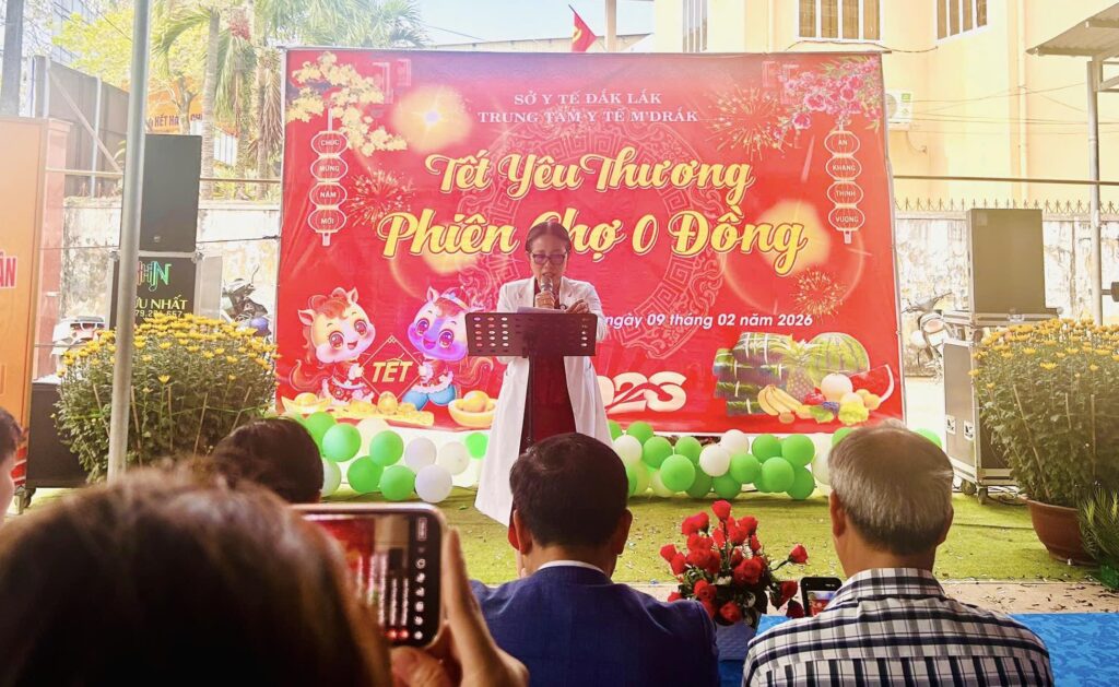 Nhằm chăm lo đời sống cho các bệnh nhân có hoàn cảnh khó khăn đang điều trị tại đơn vị, đồng thời lan tỏa tinh thần tương thân tương ái trong dịp Tết đến, Xuân về, ngày 09/02/2026, Trung tâm Y tế M’Drắk đã tổ chức chương trình “Tết yêu thương – Phiên chợ 0 đồng” tại khuôn viên Trung tâm.